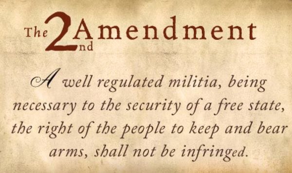 A well regulated militia being necessary to the security of a free State, the right of the People to keep and bear arms shall not be infringed.