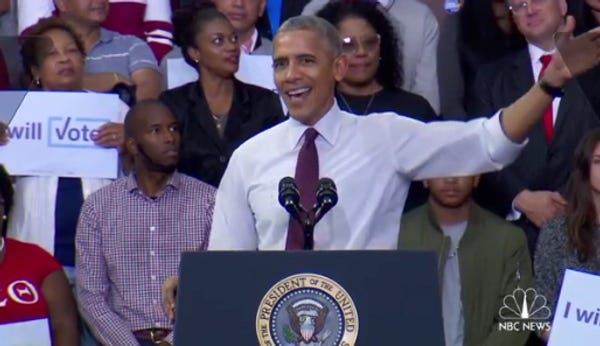 Obama tells crowd to "respect" protester at Clinton rally: "We live in a country that respects free speech." https: //t.co/kZAzsofuKp