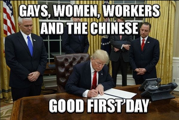 Trump pulled the funding of U.S. NGOs who like to talk about abortions in Not America because, as we all know, people can't have babies if they don't know how to make babies.