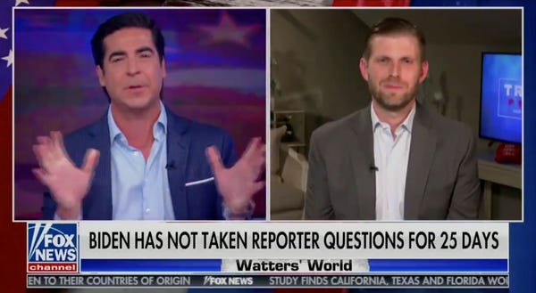 I am not saying Watters has any idea what QAnon is about. I truly don't think he does. In fact, I think the people who know the least about the QAnon conspiracy are people like Watters and Eric Trump. They don't care to really get into the weird shit these people believe, they're not going to bother, they just like that they are on the Right and that they are fervent Trump supporters. That's all they care about.