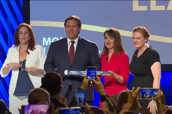 DeVos wasn't the only right-wing celeb there, either. Florida GOP Governor Ron DeSantis gave the keynote speech. Former Florida GOP Governor Rick Scott appeared on a panel talking about school safety in light of the Uvalde massacre and other school shootings — advocating for less gun control and more armed teachers.