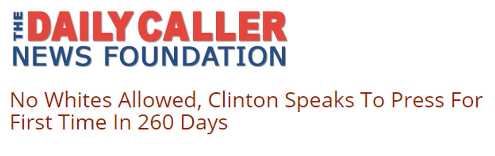 Yeah, fuckin' hell, Hillary, NO FAIR, when you gonna do a press conference for the National Association Of White Journalists, huh? That is what the Daily Caller would like to know, because it's pretty much a whites-only website.