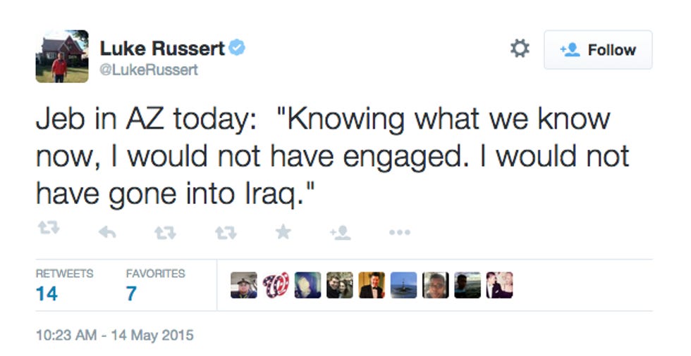 JEB BUSH: I would’ve, and so would’ve Hillary Clinton, just to remind everybody, and so would have almost everybody that was confronted with the intelligence they got.