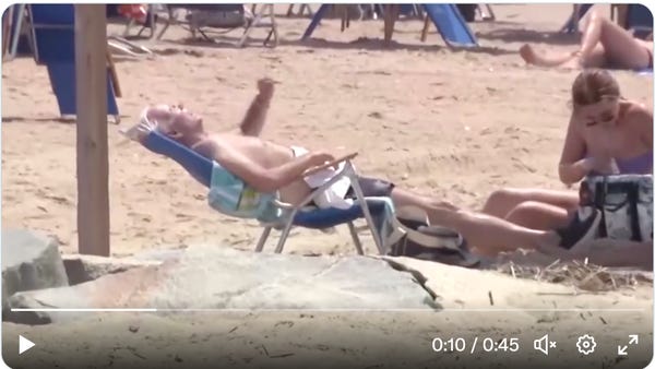Saturday is the weekend. A trip to the local beach on your day off is not technically a "vacation." However, Twitter user "lasermama," bearing Elon Musk's blue checkmark of shame, accepted the Republican National Committee's absurd framing, declaring, "Holy shit! I’m 53 years old and haven’t had that many days of vacation in my life!"