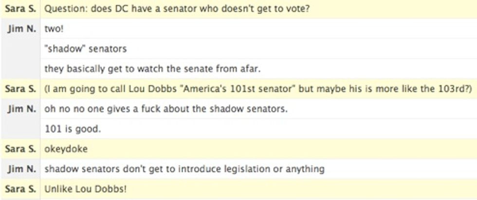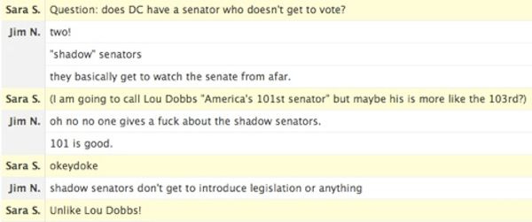 So the real question is, has Senator Schumer gotten together with DC's "shadow senators" to discuss this important legislation? Has anybody asked Chuck Norris forhisvote?