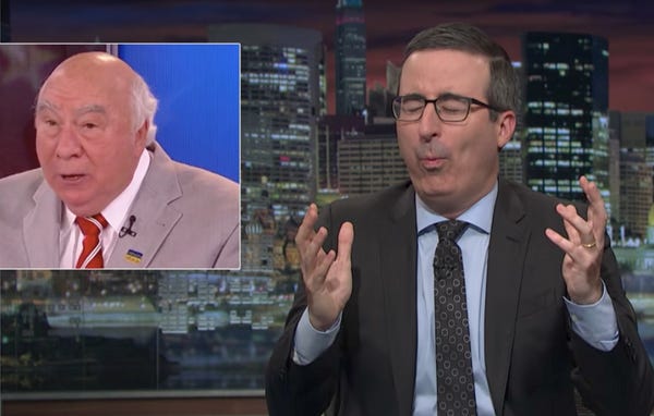 Yes, 24 minutes of ribbing on Oliver's "Last Week Tonight" gave a grownass businessman the vapors, and thus the court should please give him more money now .