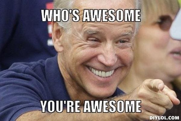 Again, is any of this going to happen? Only Old Handsome Joe can say! But if it does, we will have to amend our previously established Wonkette commenting policy (they're still not allowed) as regards the 2016 Democratic Primary: You can be a Hillz Wonker, you can be a Bernie Wonker, AND you can also be an Old Handsome Joe Biden Wonker, but you still cannot be a Jim Webb Wonker, because, again, go away you fucking troll.