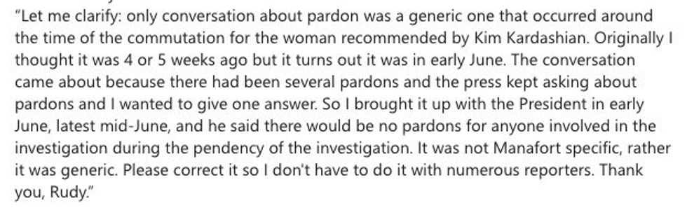 But then Rudy Giuliani, who is currently attending to the president's legal needs from a golf course in Scotland, issued this correction, according to CNN's Jeremy Diamond.