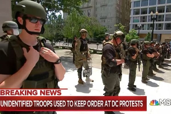 As National Guard and regular Army troops occupy Washington DC, joined by over 1,300 mystery federal cops who mostly aren't wearing any identification or name badges, it's worth remembering what Attorney General Bill Barr thinks about the job of law enforcement. Whenever he gets the chance, he tells police groups that American police have one of the toughest jobs in the world, made infinitely worse by the lack of respect from some people. So it shouldn't be any surprise at all that Barr is a big fan of treating Americans protesting police brutality as if they were literally a military threat, to be dealt with as harshly as possible. Barr may draw occasional rhetorical distinctions between peaceful protesters and violent rioters, but in practice, anyone protesting our brave noble police is a potential threat to public safety, and therefore a target that needs to be neutralized.