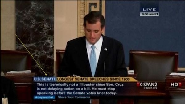 Wingnuts Outraged At Lack Of Respect For Ted Cruz's Fauxibuster, Unlike That Time Everyone Hearted Wendy Davis's Actual Filibuster