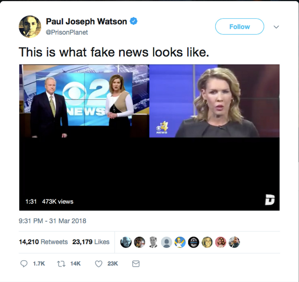 After Deadspin published the video, Infowars troll Paul Joseph Watson (the one who is always pathetically trying to claim that being conservative is "punk rock" now) published on his own Twitter feed with literally zero contextual information.