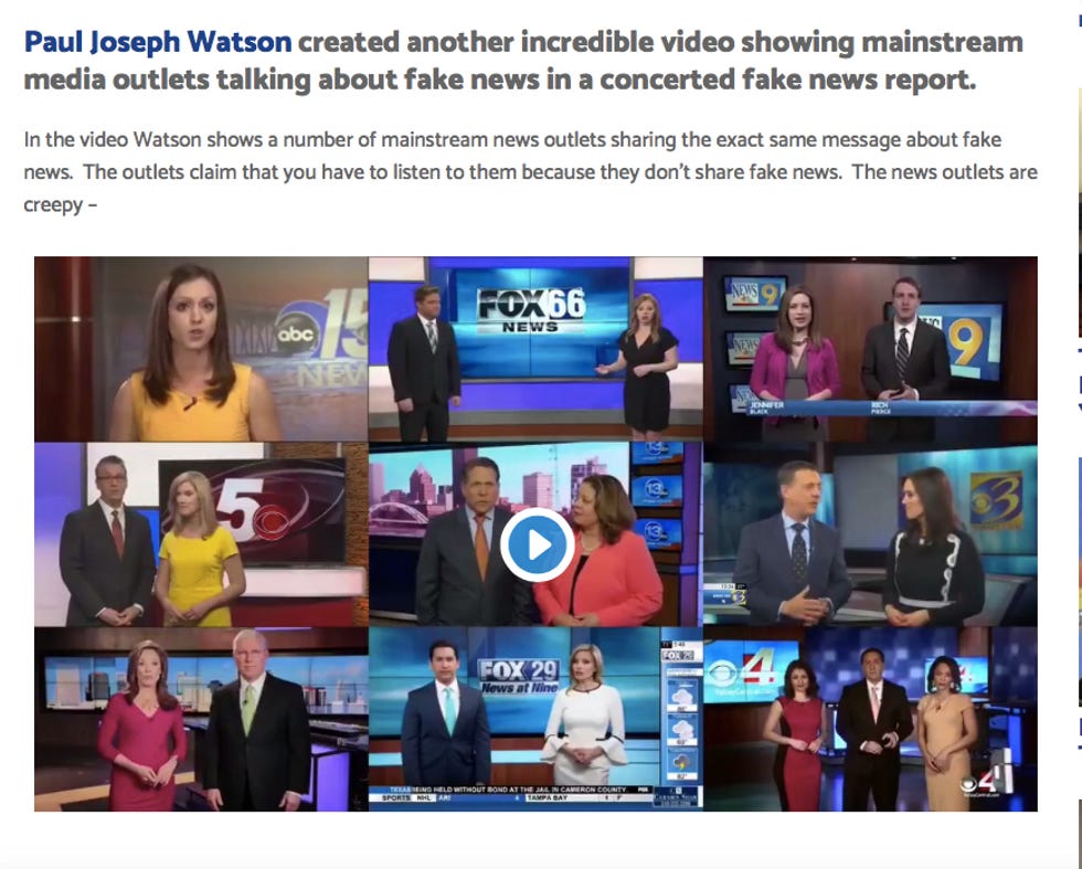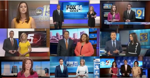 On Saturday, Deadspin published a jarring video of anchors from Sinclair Broadcast Group news stations reading a script about “the troubling trend of irresponsible, one sided news stories plaguing our country.” As we all know, Sinclair is a conservative group buying up tons of local news stations and newspapers and infusing them with a conservative, pro-Trump bent. This particular segment was one of Sinclair's "must reads," which means that the anchors from over 200 stations were contractually required to do it.