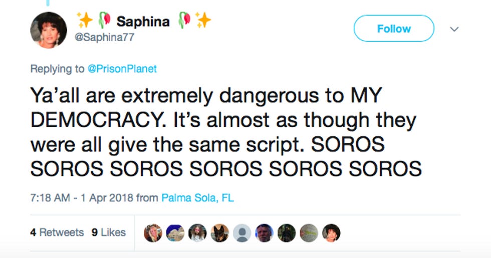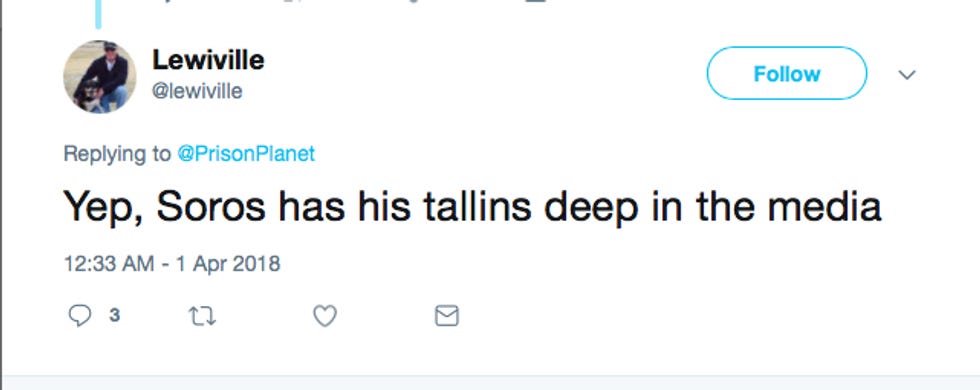 And they weren't the only ones who were fooled. The responses to Watson's tweet were filled to the brim with angry Trumpists who were positively outraged that George Soros, his "tallins," and The Liberal Media would do such a thing!