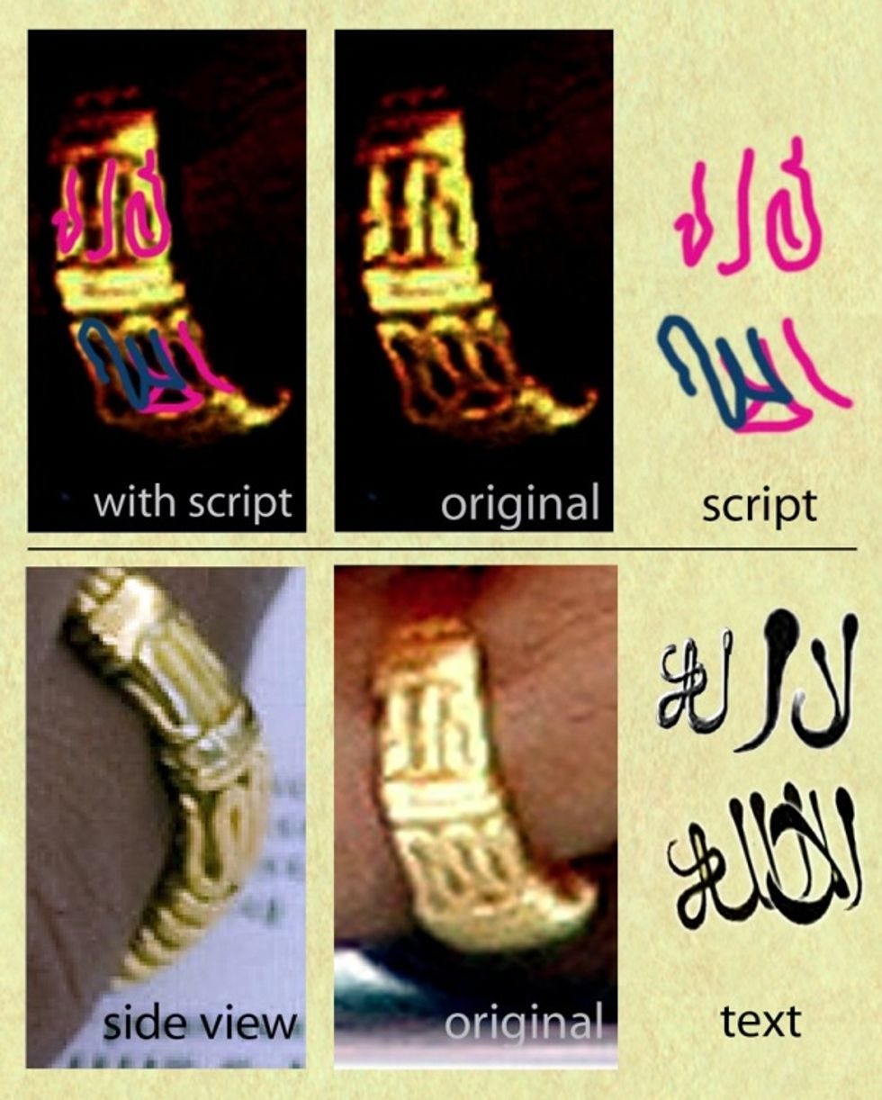 “Though Islamic law prohibits the wearing of gold jewelry by men, it is a widely accepted custom, even in strictly Muslim countries,” he said. “The wearing of gold rings is even more acceptable when it contains a religious message, such as ‘There is no god except Allah.’”