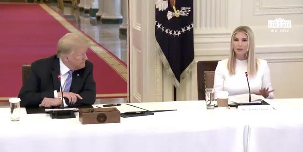 This campaign is the brainchild of the American Workforce Policy Advisory Board, which Ivanka Trump co-chairs with Commerce Secretary Wilbur Ross, who five months ago claimed it was “physically impossible" for the United States to experience a recession. He also predicted that COVID-19 would accelerate job growth in America after devastating China. So, he's someone you want to pay attention to on important matters.