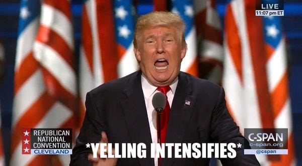 Donald Trump accepted the Republican presidential nomination , and then proceeded to scream at America for over an hour last night.