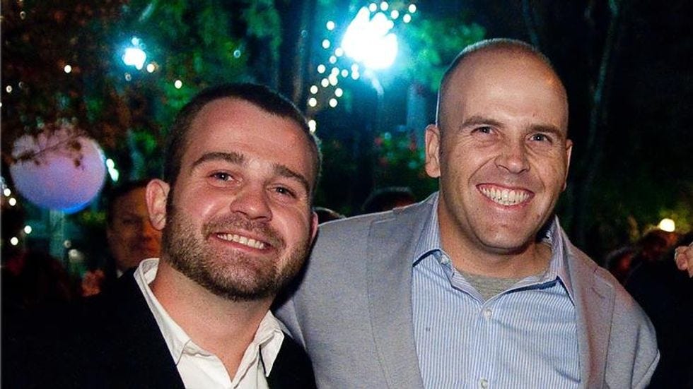 The fetching gentlemen pictured above are Thom Kostura and Ijpe DeKoe (it's like the first part of "Ipanema," they will explain, the 50th time you ask how to pronounce it), one of the SCOTUS-bound Tennessee couples. They also, full disclosure and the entire point of this post, are two of my closest frenz. The Los Angeles Times has a handy little profile of them today , which saves me from having to write that part out myself: