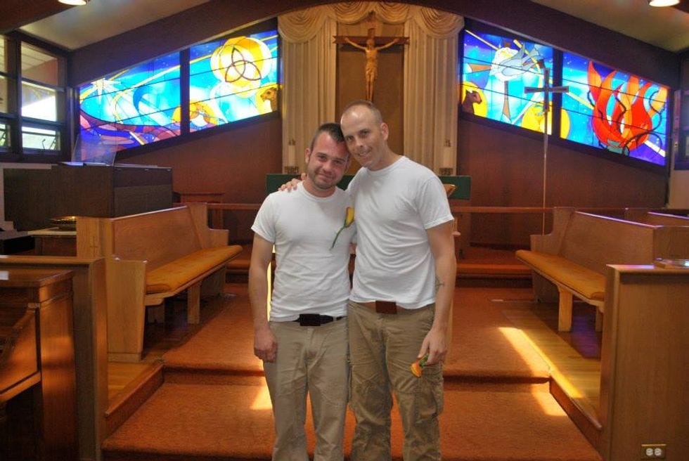 It was an odd situation they found themselves in. They were legally married in New York, and around the same time, Don't Ask Don't Tell was repealed, which meant that they were also legally married when they were on the grounds of the naval base in Millington, TN, where Ijpe is stationed. The second they left those gates, though, they were legal strangers, which kind of highlights how untenable this patchwork of gay marriage laws really is. Many couples move for many different reasons, but the military is a good example of "you just don't know where you're going to end up."
