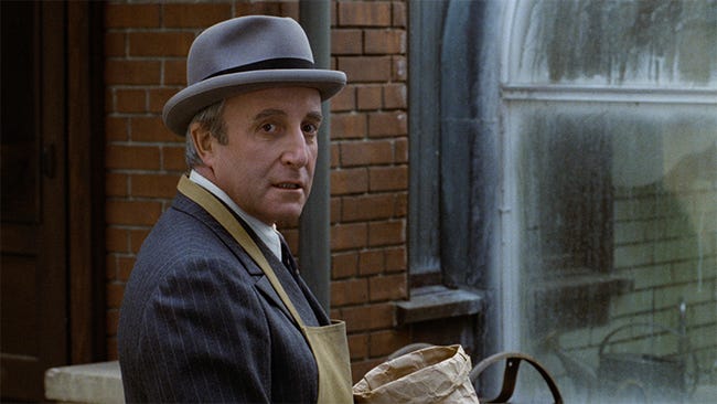 The movie begins with Peter Sellers' character Chance sleeping as the TV awakens him to the sound of an orchestra playing Franz Schubert's 8th(Unfinished Symphony.) Still in his bed clothes he waters plants and dusts an old automobile with the constant of a television in the background. He is an older man, ritualistic in his behavior, his pajamas buttoned all the way to the top. A remote control in his hand, clicking from Schubert to cartoons, to the weather and landing on Sesame Street as he waits for his breakfast which doesn't come. Instead he is given news that will alter everything he knows but he cannot comprehend the changes ahead. You see that Chance doesn't understand that there is a world outside the home where he has spent his whole life. As he sits on the edge of a bed where his deceased benefactor lays, he does what always brings him comfort, turns on the TV. That is the world beyond his own that he knows as reality.