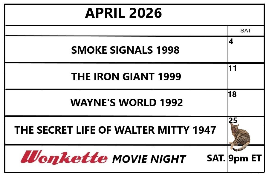 Next week we start April with Smoke Signals, available for free with ads on Pluto TV and YouTube. $3.99 in the usual places.