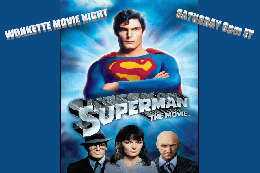 Superman: The Movie stars Christopher Reeve, Margot Kidder, Gene Hackman, Marlon Brando, Valerie Perrine, Ned Beatty, Glen Ford, Susannah York, Sarah Douglas, Jack O’Halloran, and Terence Stamp. Directed by Richard Donner.