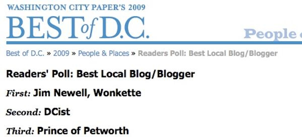 Capitol Hill typing demon Jim Newell has won an Important Honor! He probably thanks you for your support, in his way. [ Washington City Paper ]