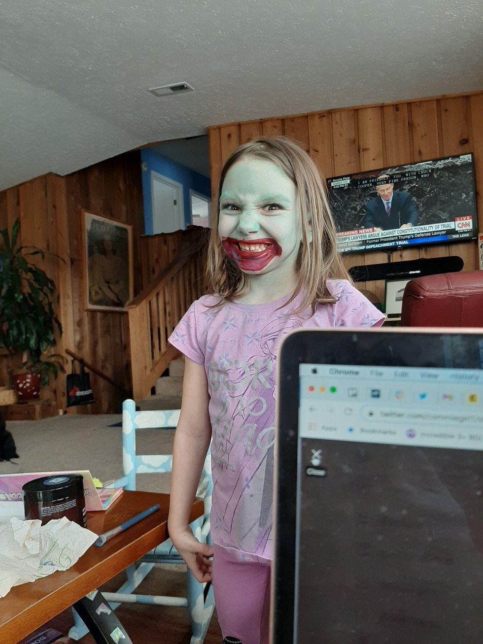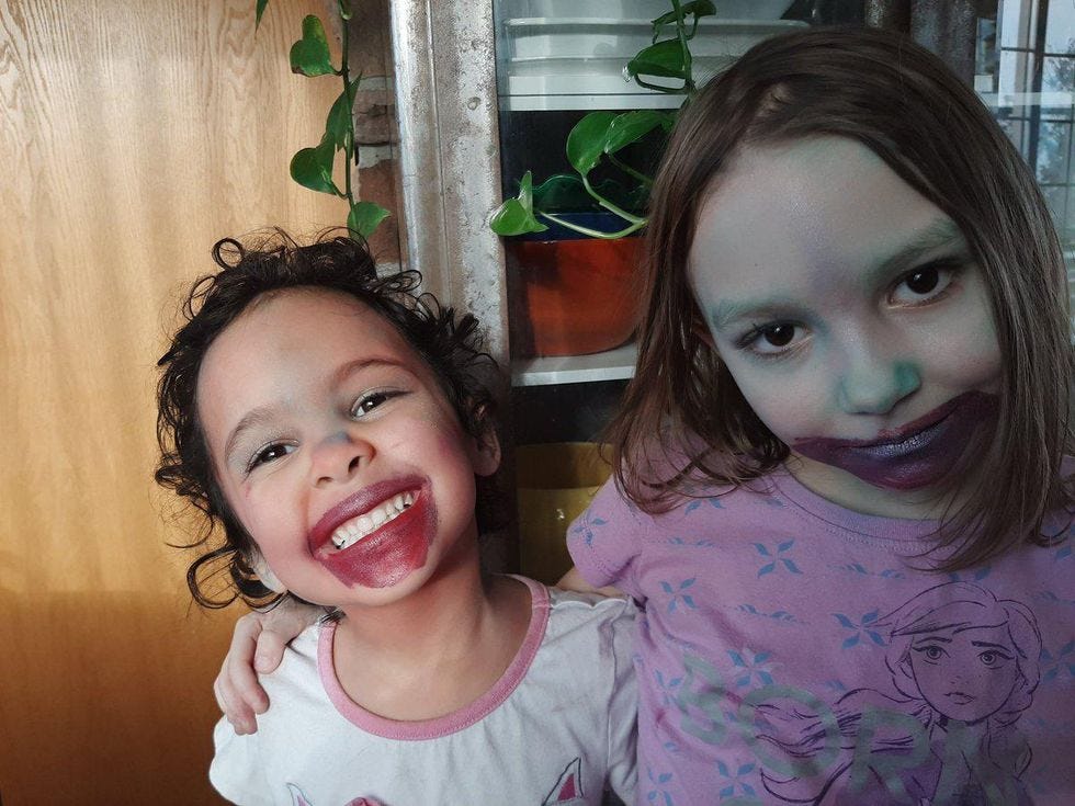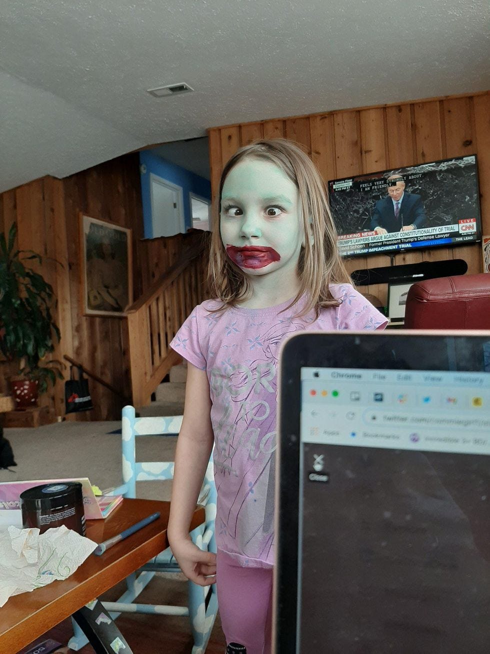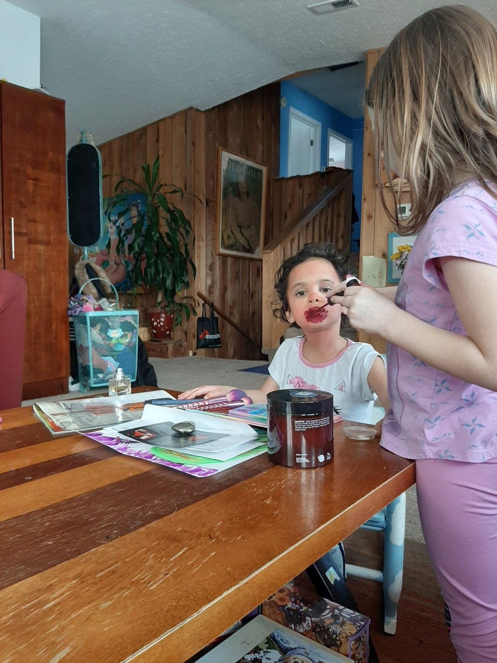 "Wait," she said, "I have to put blood on my mouth like I ate someone. Okay, now!"