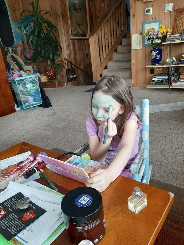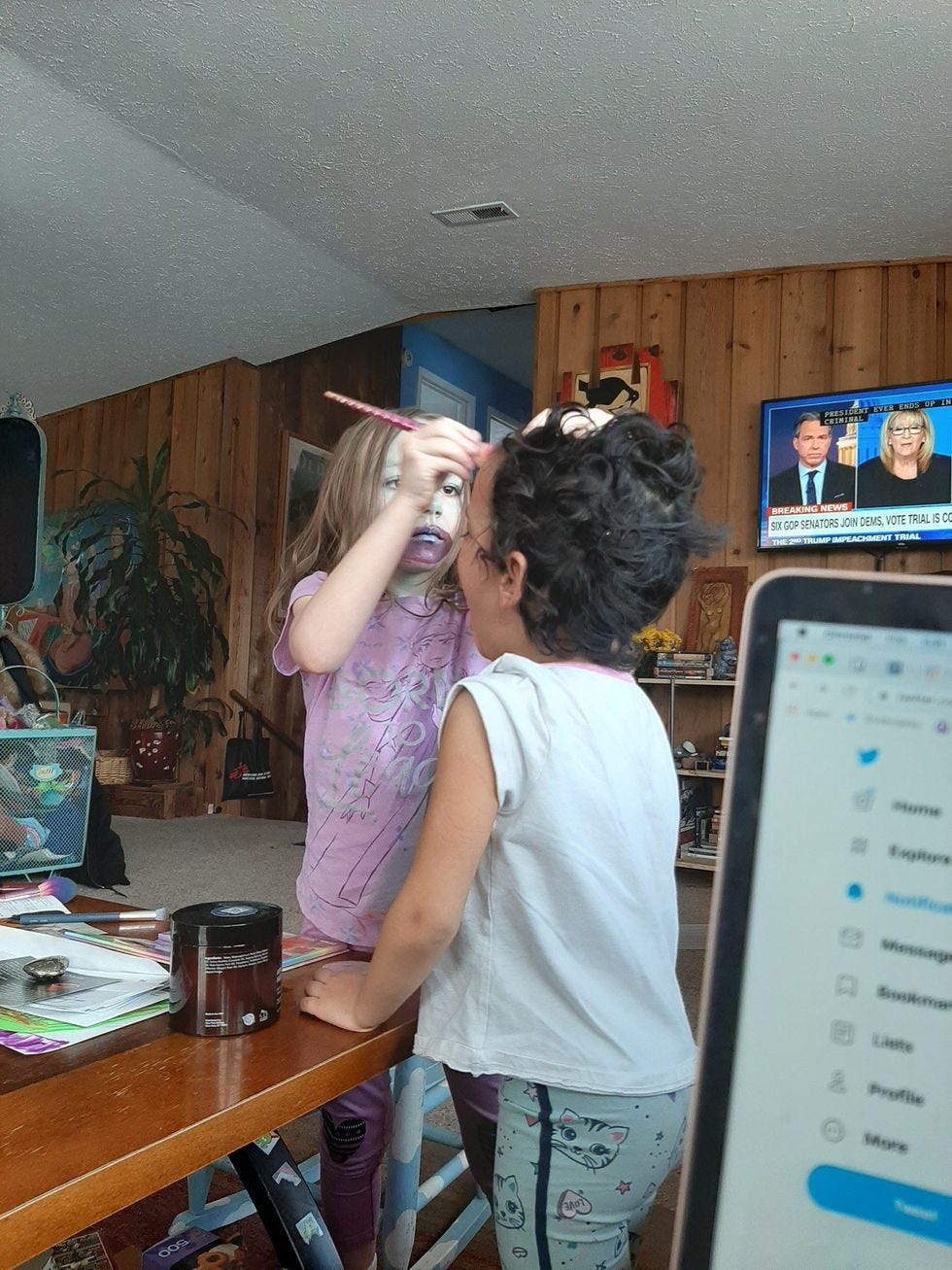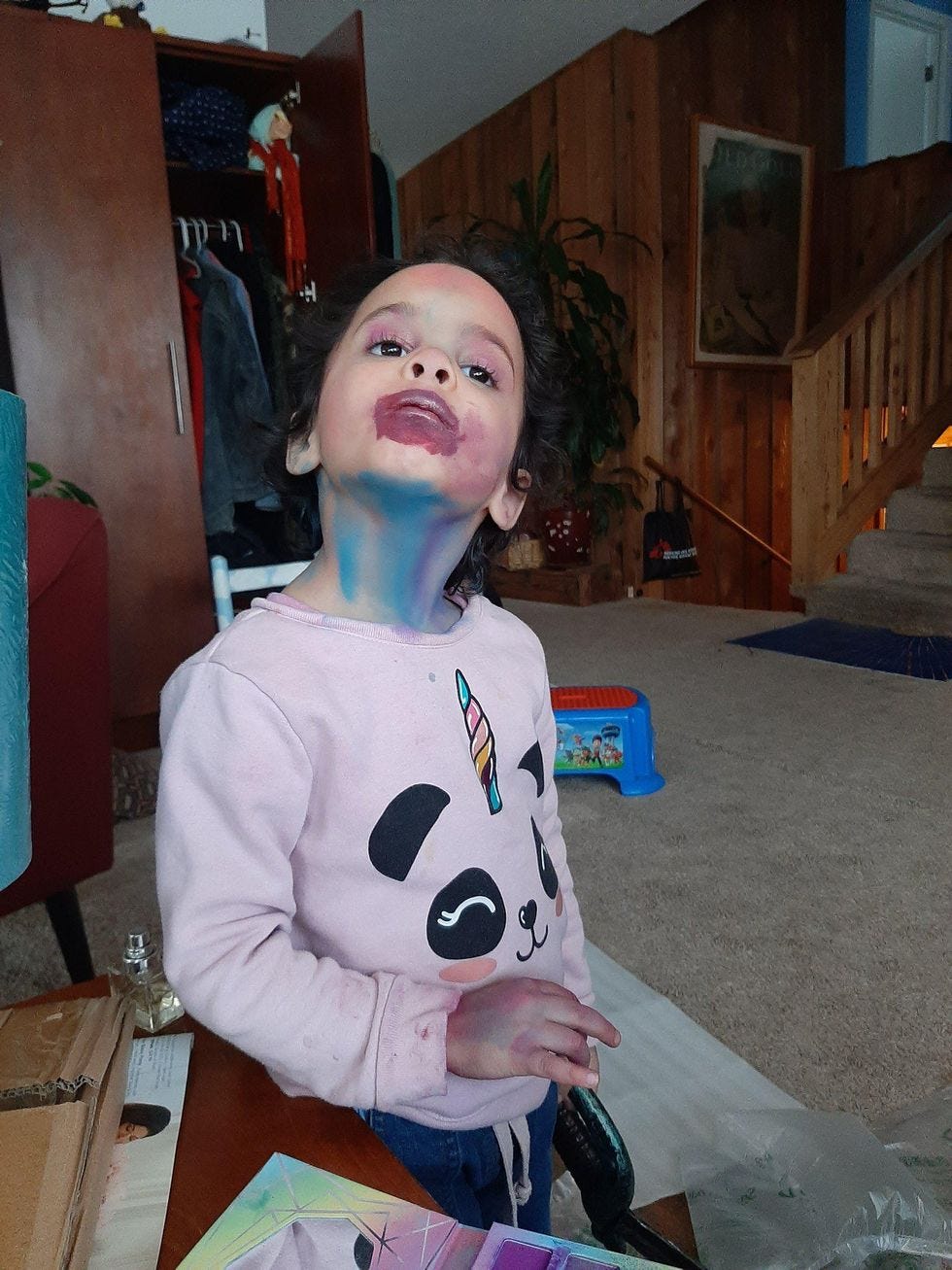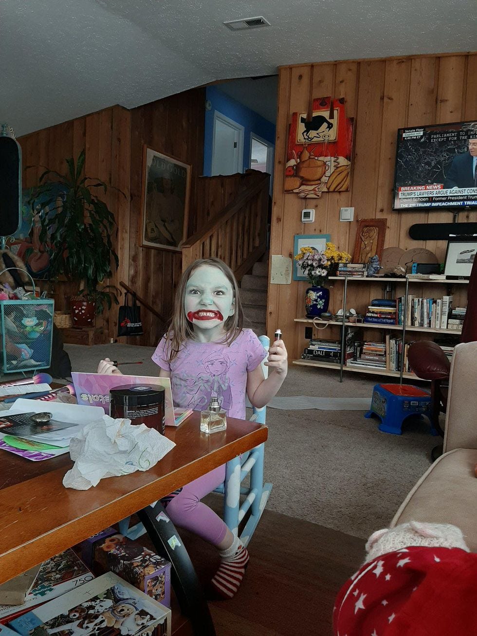 "Wait," she said, "I have to put blood on my mouth like I ate someone. Okay, now!"