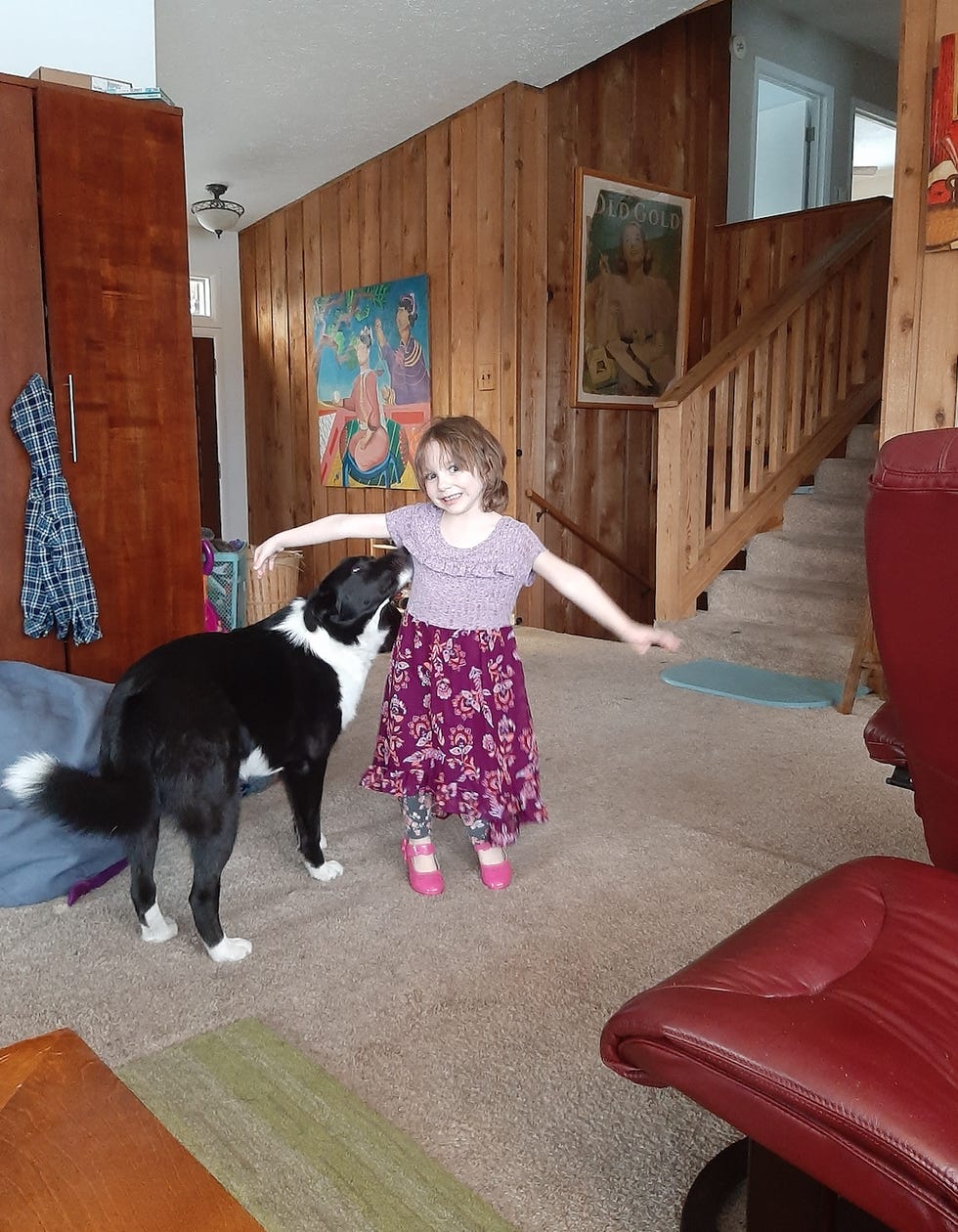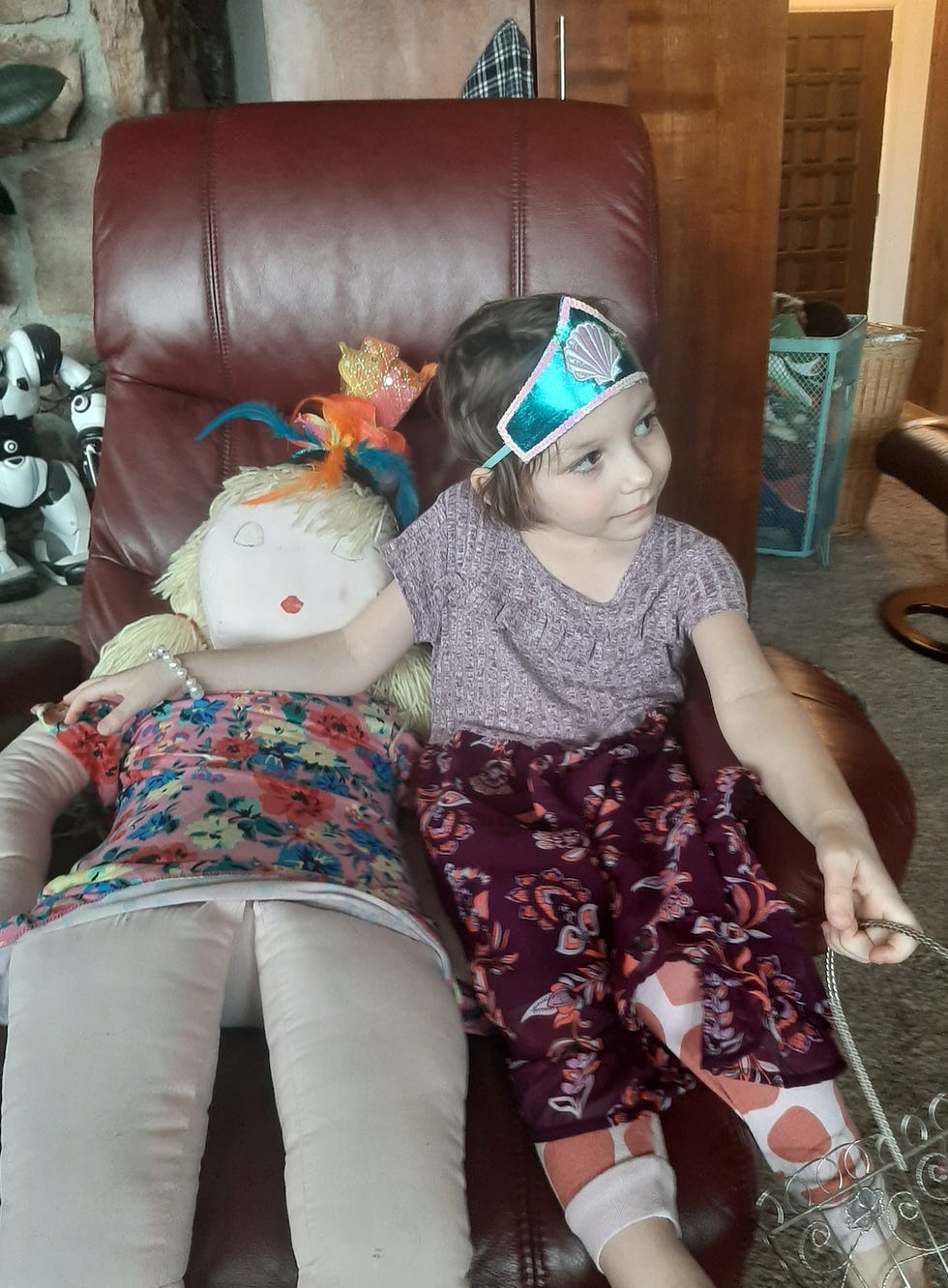 Reader Meggan sent her mom-made dolly to one Miss Donna Rose, who immediately stole her dress for herself and put one too tiny from her closet on the doll, whom she has named Malia.