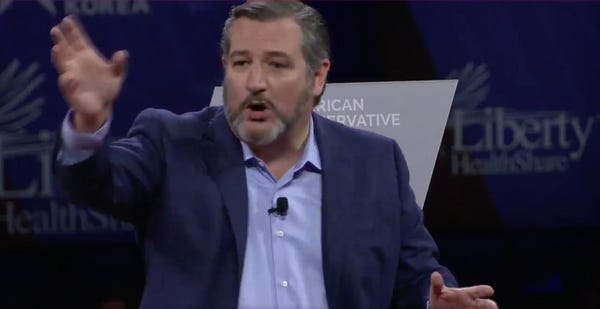 That's the content of a nice, slimy attack ad, but it's still total bullshit. Daily Wire podcaster Michael Knowles, who hosted the discussion with Cruz, heartily agreed with Cruz's remarks and claimed that the Republican message of FREEDOM was far more compelling than Democrats running around saying they are "57 genders and we're going to take all your property."