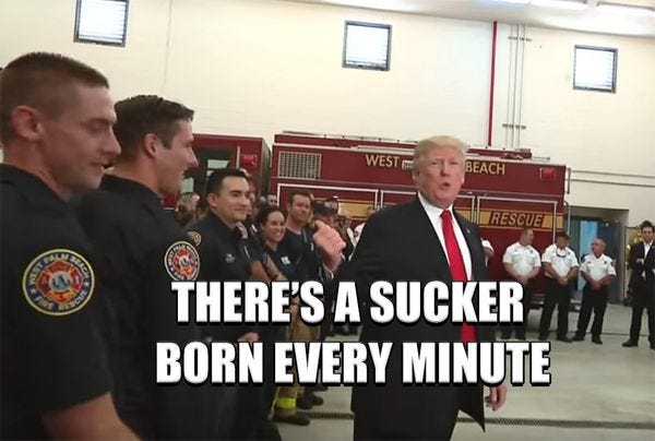 Trump was running his mouth in front of some firefighters and started lying about all the things he hasn't done. Again.