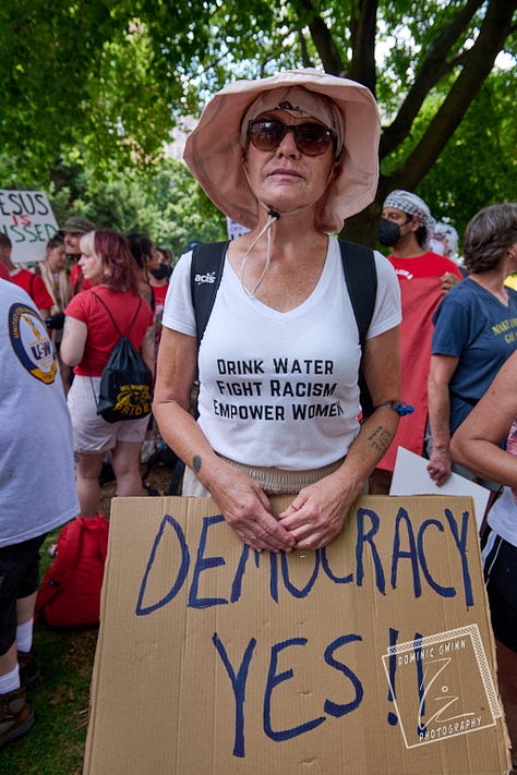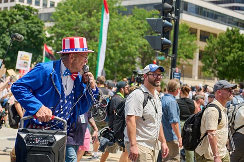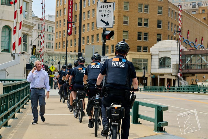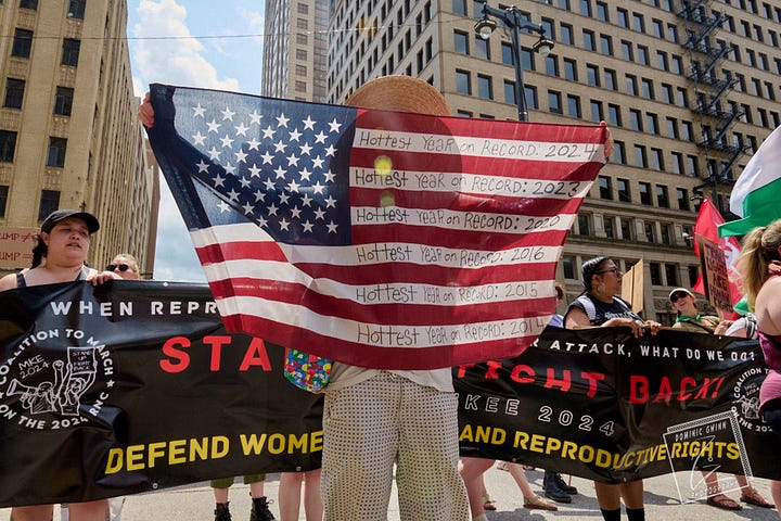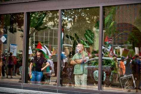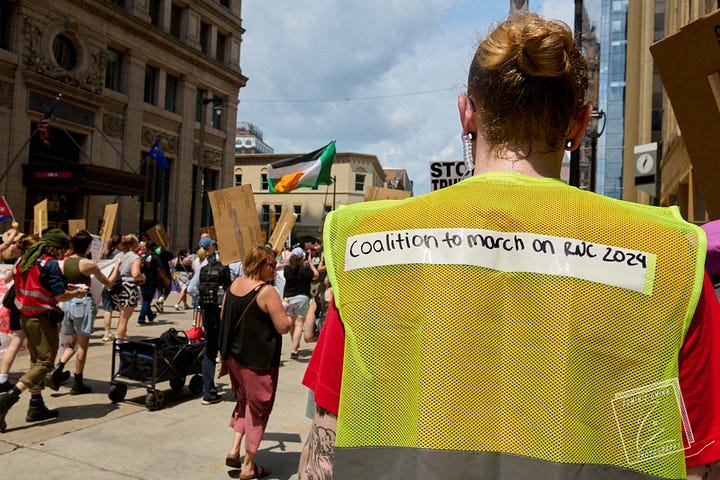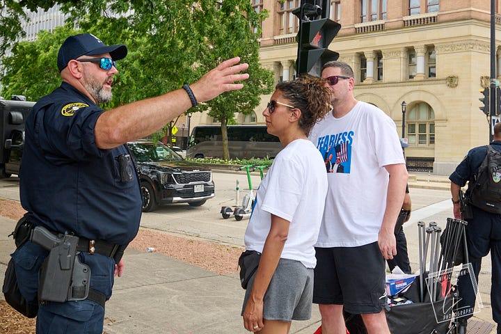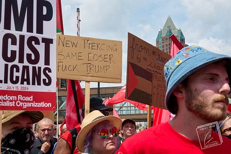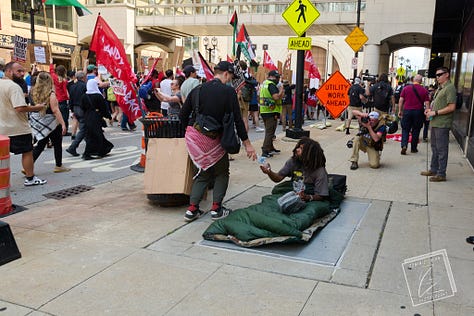 On Monday, Dom (and Robyn, report to follow) captured the hundreds of people in Milwaukee, Wisconsin, protesting the RNC. Here’s what he saw. He also told me the absolutely stupidest thing I heard today — about fellow photographers who wouldn’t take *water* from the activists, because that would make them beholden to them. In 90 degree heat. With whatever the fuck the dew point was. As they were ready to pass out. My god. I’ve been writing about the Republicans for 30 years. I’ve never not eaten their fucking caviar, and I’ve never once been nice to them. Jesus Christ.