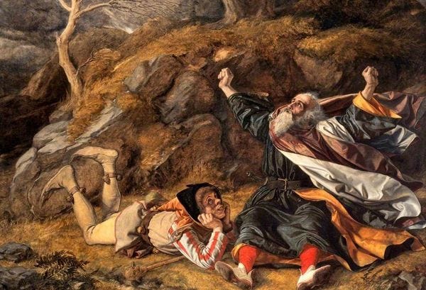 As for Lear's "I am a man / More sinn'd against than sinning," excuse us, but we have been over that before when Fox News tried to get away with doing Shakespeare. It's not meant to be taken straight at all; it's just more evidence of how delusional Lear is. The line is delivered amidst a rant in which he blames the gods for being incredibly unfair to him, and threatens to have them arrested for treason.