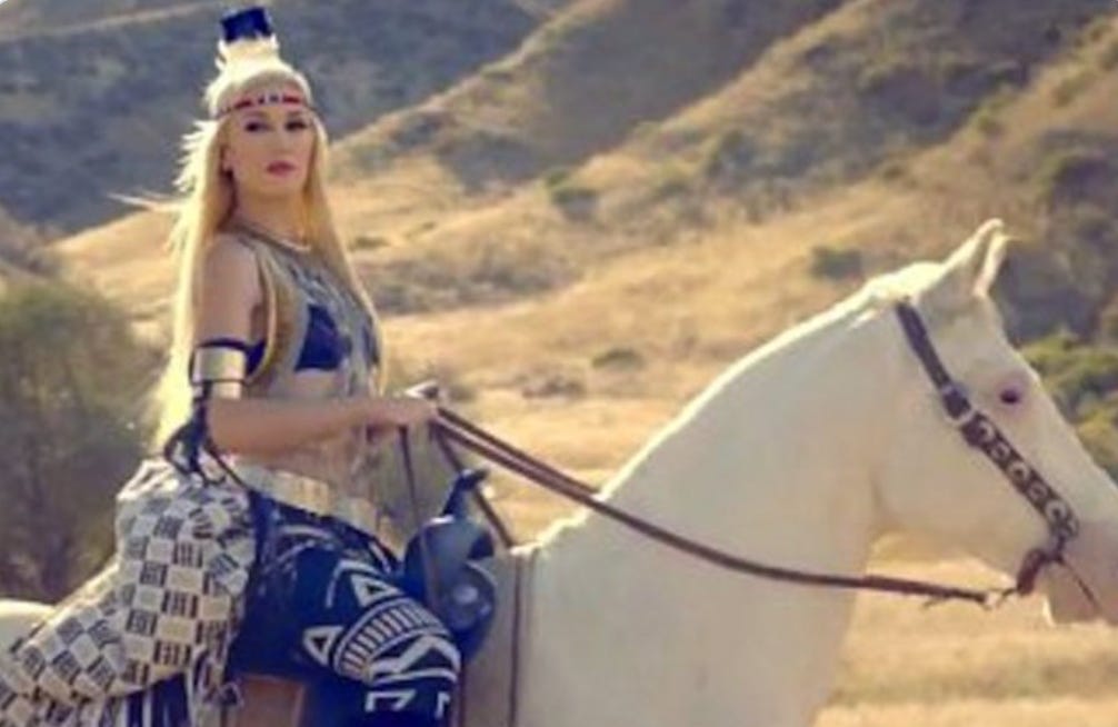 Stefani has always tried to defend this by saying she’s appreciating, not appropriating — though this would be a lot easier to buy if her “appreciation” did not so often look like it came out of a Spirit Halloween bag.