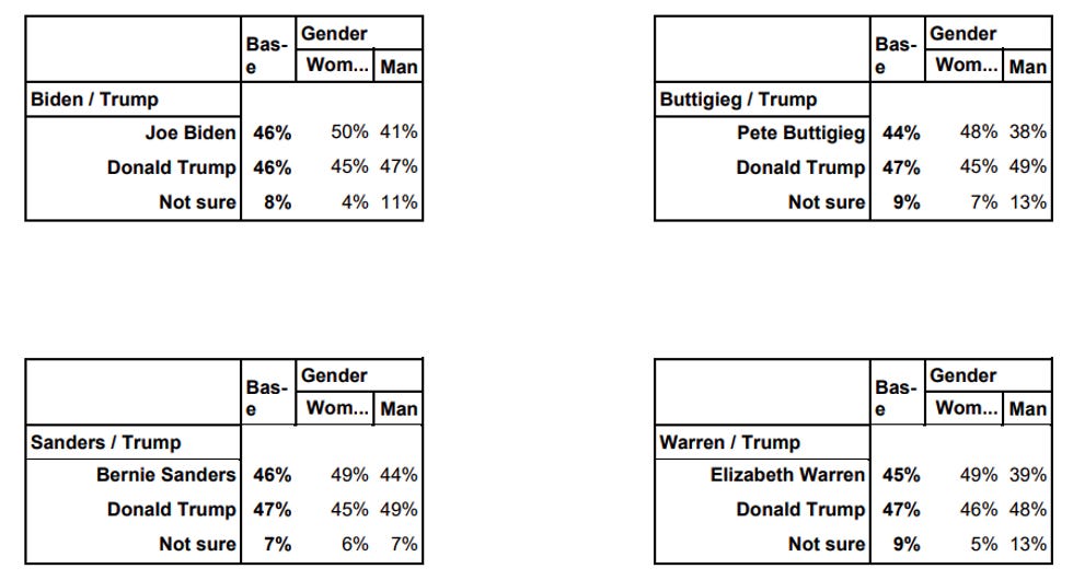 In Arizona more than 80% of the undecideds in every match up between Trump and the individual Democratic candidates disapproves of Trump. And the undecideds also voted for Hillary Clinton in 2016 by anywhere from 45-50 points. If you allocate the undecideds based on whether they approve of Trump or not, all of the Democrats move into leads ranging from 4-6 points. If you allocate the undecideds based on whether they voted for Clinton or Trump in 2016, all the Democrats move into leads ranging from 2-4 points.