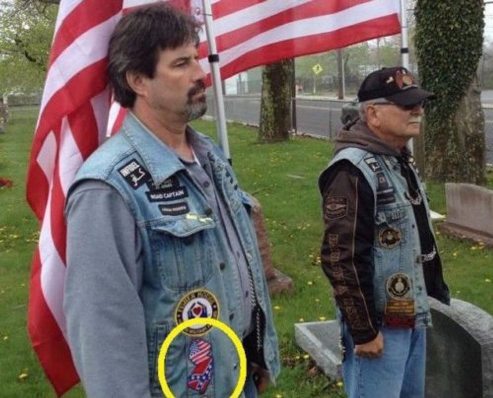 We have checked, and there were actually no parts of New Jersey that belonged to the Confederacy, so that's definitely not an accurate depiction of history. Even so, Carman insisted the patch had no racial overtones, heavens no -- it simply represented the political divide between North and South Jersey, you know, and it was for the vets: