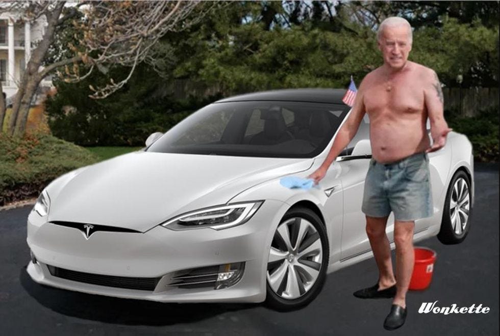 For 'Climate Day,' Shirtless Joe Biden Washes Electric Car In White House Driveway