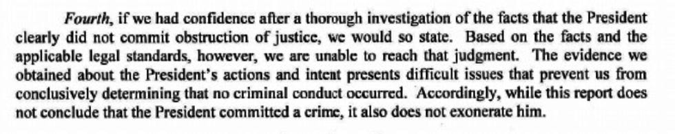 "Accordingly, while this report does not conclude that the President committed a crime, it also does not exonerate him."