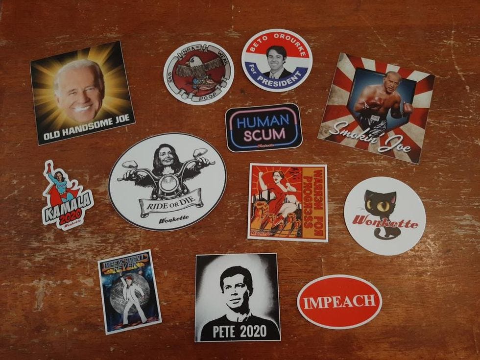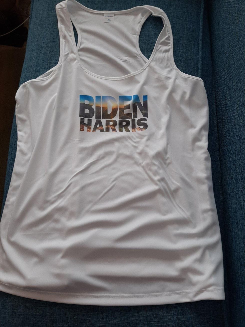 So you can buy long-sleeve men's or women's white shirts with Kamala or Joe or RBG or Liz Warren or Barack or your cast of thousands. Or you can buy black or white tanks (women's only) with any of the above. Or you can buy men's or women's black or white T-shirts with all of the above, plus some others. I don't know, look around at that link. Also there are panties.