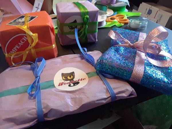 You have a loved one who LURVES YOUR WONKETTE. Buy them some shit straight from our basement! Nota bene: We are shutting down our basement factory right after Christmas, so if you wanted some presents from us anytime in the first half of the year, please to buy it ahead of time, hide it in your garage, and then forget not only where you hid it, but also what you bought. Now you are a Schoenkopf, you lucky bastard you.