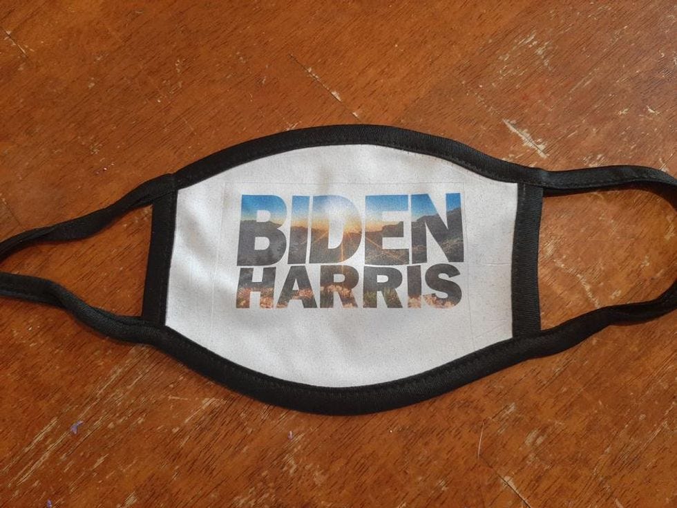 There's a new Nu in town. Time to get more face masks. They come with a filter, they fit well, they do NOT have adjustable ear loops; when we replenished our supply of blank masks on Etsy, they're the kind you see in the Biden Harris New Dawn masks, like so.