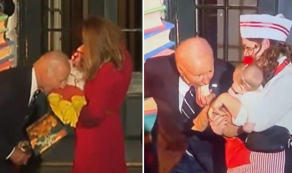 But the crack journalism cosplayers at rightwing disinformation factory The Gateway Pundit have now run multiple stories about the latest real threat to the Republic: At last night’s White House Halloween party, President Joe Biden tried to amuse several cute li’l babies in a photo-op line by pretending to bite them, O The Horror! Prepare to be stunned by the breathless headlines!
