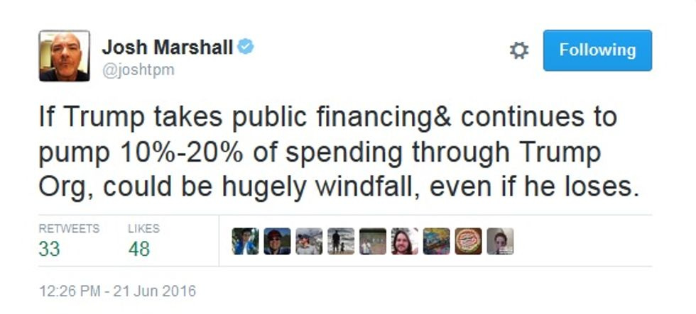 So that's some math -- and we'll close with this intriguing thought from Josh Marshall, editor of Talking Points Memo: