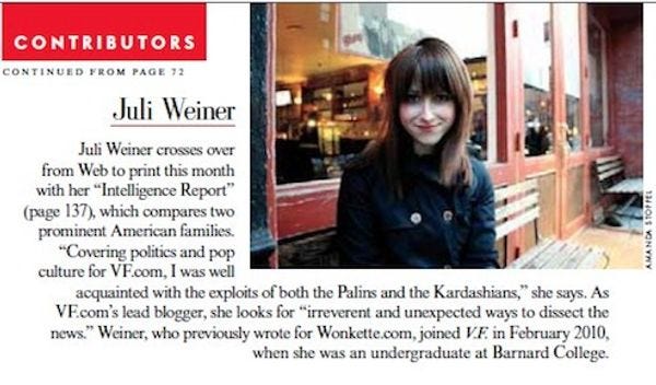 Your Beloved Former Wonkette Editor Juli Weiner Is Now In Vanity Fair Magazine