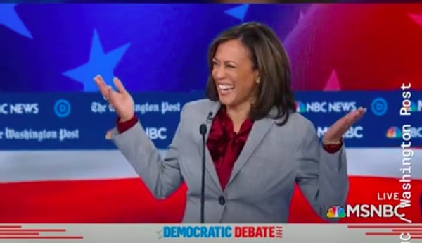 Harris had another great moment later on when Joe Biden forgot she existed. He was selling his legitimate bonafides with black voters and boasted about his endorsement from former senator Carol Mosely Braun.