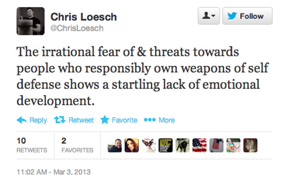 We would argue that people who seemingly need Berettas with 15-round clips to feel manly should not criticize others for a lack of emotional development. Guns are the lazy man’s self-defense. Chris, try learning wing chun or krav maga. That shit is hard. Now, we understand the concept of keeping a pistol or shotgun around the house or on your person for self-defense, even though we suspect some of the impulse to own lots of weaponry is strongest in people who saw Red Dawn in 1984 and never got over it. The problem we have is not that you want to own guns, it is that guys like you have to be such dicks about it.