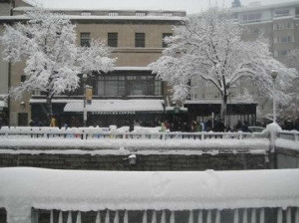 Snow WILL NOT stop anyone in DC from enjoying their Starbucks.