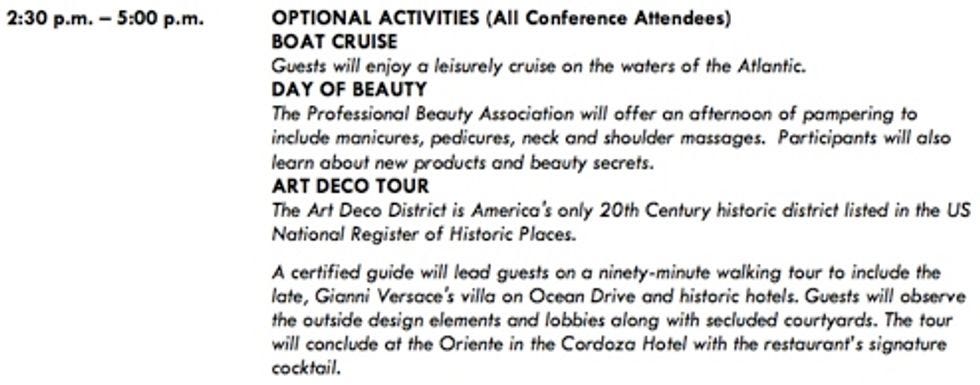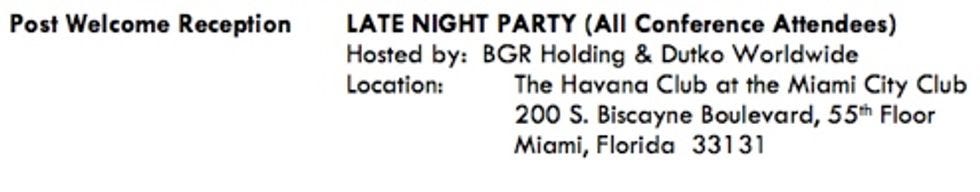 Starting tomorrow, a bunch of leaders from the loser party will meet in the spicy gay Mexican outpost of Miami, Florida, for the most important event of the year: the Republican Governors Association's 2008 Annual Conference (.PDF). Yay! They will supposedly discuss the future of the party, but since there is no future, it will just be five or ten potential 2012 candidates (including one S. Palin!) forging alliances to determine which will lose to Ralph Nader in four years. But! There are many delightful events on the conference schedule, so let's see what the cool kids will be doing.