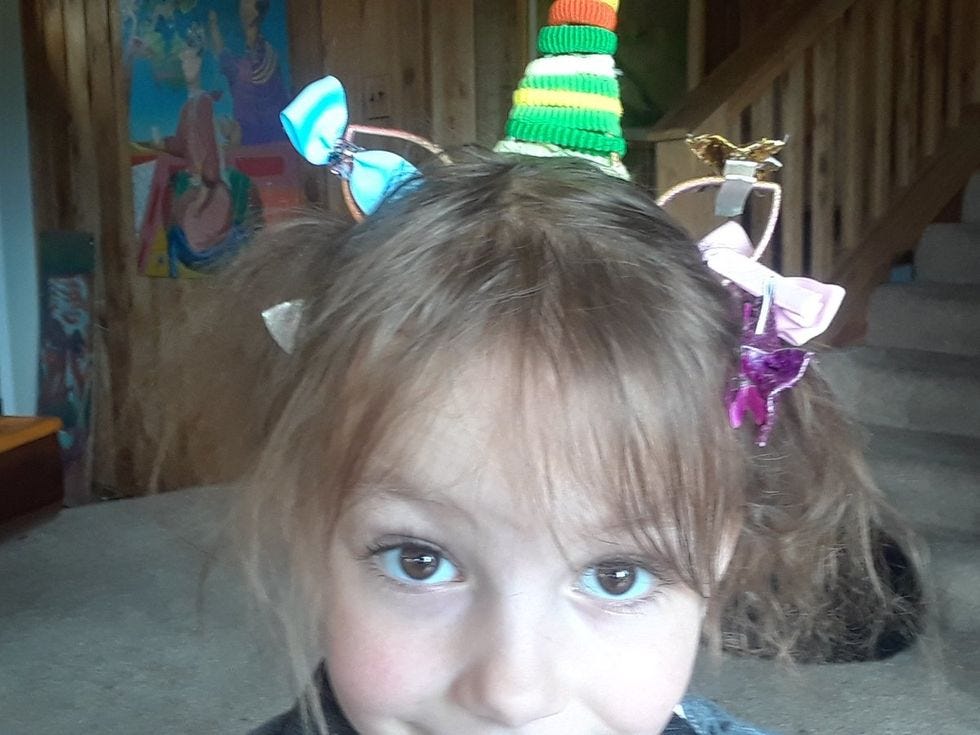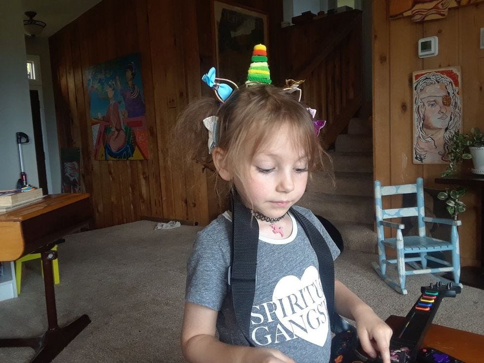 Kid pics. By the way, we are informed she designed the headpiece herself, because she is #StyleFile.