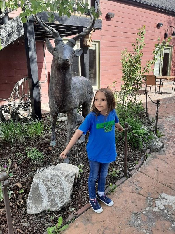Now we are in Phillipsburg, where we drove three hours, the most beautiful drive in the world, all full of RED CHINA DEMOCRATS BLUE LIVES signs, to go to the candy store for Donna Rose's birthday. And it was closed and doesn't open till Sunday! And did I imagine the people at the RV campground restaurant glaring when they saw our children in masks, like they were doing their best not to call CPS? But then it turned out the boy at the playground, whom I slagged privately for his DOMINATE shirt, and assumed many terrible (unprintable) things about him, had two dads. And at least some of the problem was me.